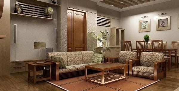 Gam màu chủ đạo thường thấy trong nội thất phòng khách tại Nhật Bản thường là màu vàng nâu, vàng, kem,… Người Nhật Bản rất ưa chuộng nội thất gỗ.