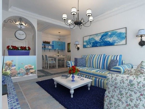 Hai màu sắc căn bản mà bạn cần phải nhớ khi thiết kế nội thất phòng khách cho người mệnh Thủy đó là xanh và đen.
