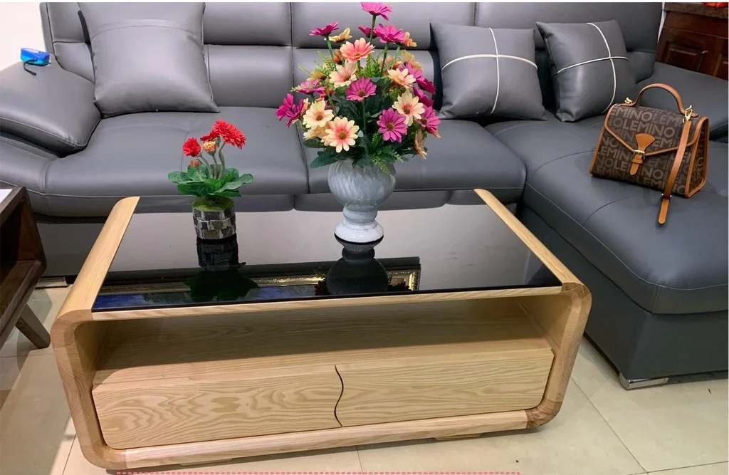 Bàn trà sofa gỗ sồi mặt kính